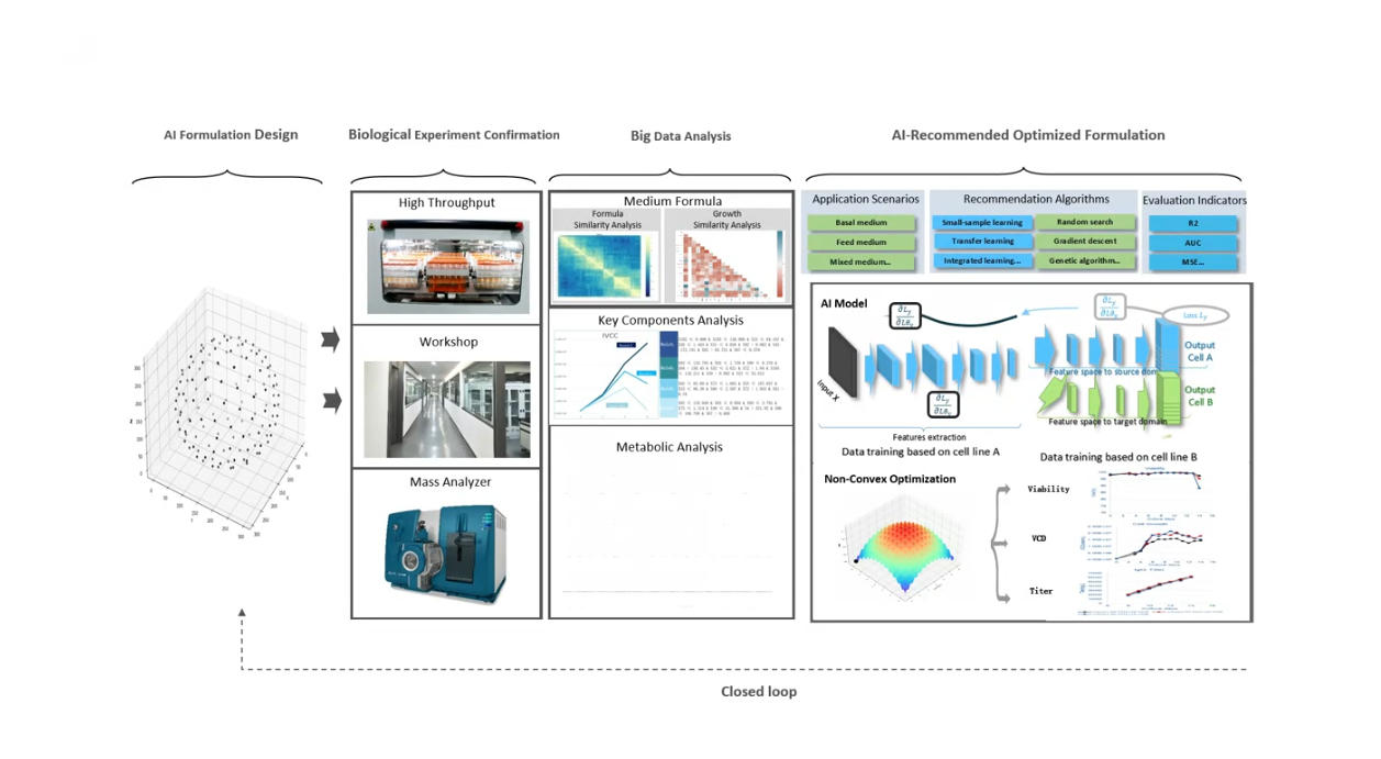 The AlfaMedX platform applies artificial intelligence (Al) technology to the development of cell culture media formulations, establishing a media formulation algorithm platform to develop media suitable for cell growth, protein expression, and cell differentiation. The platform has a stable culture medium supply capacity with an annual output of 250,000 L. It has passed ISO9001:2015 certification and continues to supply high quality culture medium for the research and development and production of customers in the global life science field.
