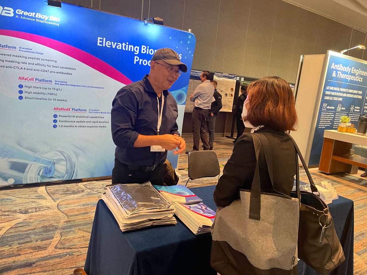 大湾生物运用AI赋能生物工艺开发,已发展为生物工艺智能化领域的先驱者,相继落地颇具优势的技术平台广受海内外客户伙伴的认可。此次,大湾生物团队同时出席中美两地盛会,向全球客户提供了细胞株构建、培养基开发等大大缩短生物药IND报批时间的创新性解决方案,反响热烈。